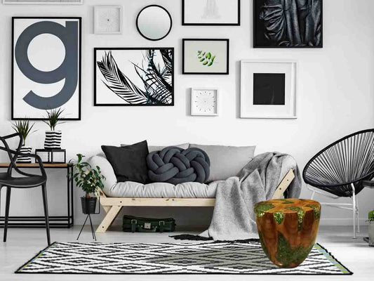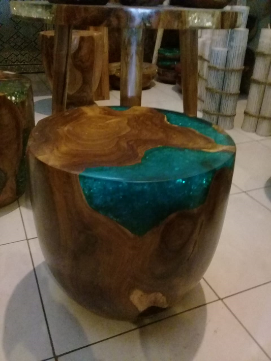 Teak Root & Cracked Resin Round Stool- Green Teak Root & Cracked Resin Round Stool- Green