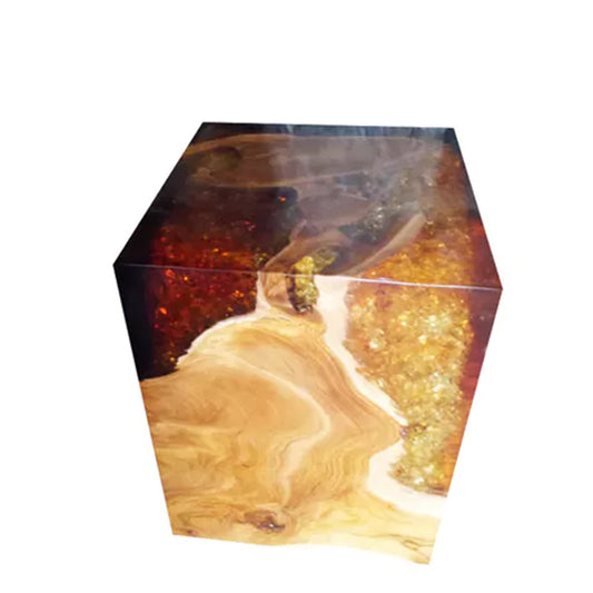 Teak Root & Cracked Resin Stool- Ochre/Brown Teak Root & Cracked Resin Stool- Ochre/Brown