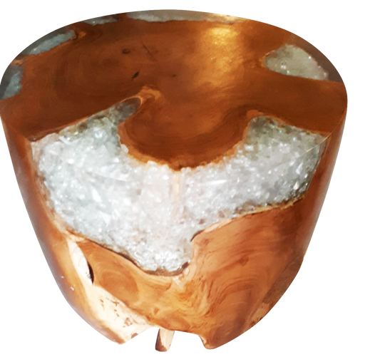 Teak Root & Cracked Resin Round Stool- Clear Resin Teak Root & Cracked Resin Round Stool- Clear Resin
