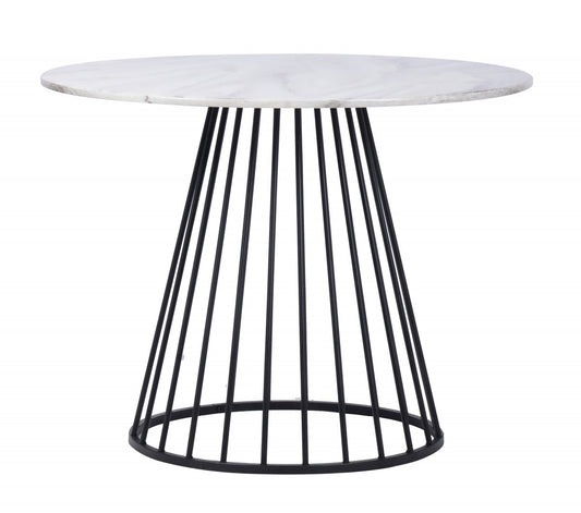 White And Black Rounded Metal Pedestal Base Din... White And Black Rounded Metal Pedestal Base Dining Table By Homeroots
