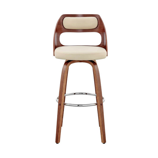 Gerty 30" Swivel Cream Faux Leather and Walnut ... Gerty 30" Swivel Cream Faux Leather and Walnut Wood Bar Stool By Armen Living