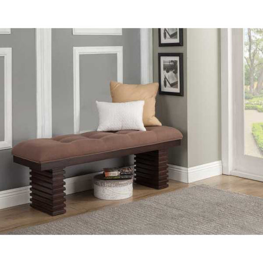 Leatherette Upholstered Tufted Wooden Bench Wit... Leatherette Upholstered Tufted Wooden Bench With Chamfered Legs, Brown By Benzara