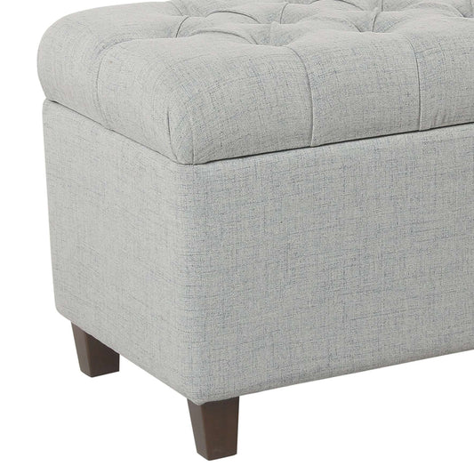 Polyester Upholstery Bench With Button Tufted H... Polyester Upholstery Bench With Button Tufted Hinged Lid Storage And Wood Feet, Large, Light Gray By Benzara