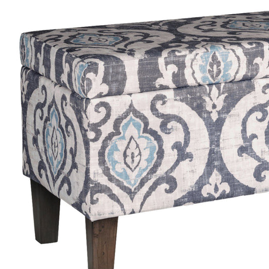 Damask Patterned Fabric Upholstered Wooden Benc... Damask Patterned Fabric Upholstered Wooden Bench With Hinged Storage, Large, Multicolor By Benzara