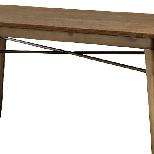 Wood And Metal Frame Console Table With Open Bo... Wood And Metal Frame Console Table With Open Bottom Shelf, Rustic Brown By Benzara