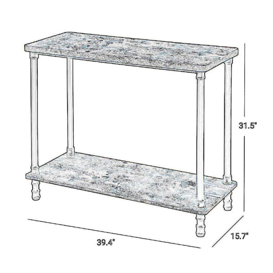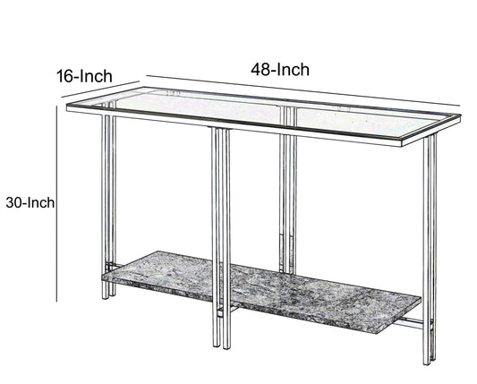 Glass Top Metal Sofa Table With Marble Bottom S... Glass Top Metal Sofa Table With Marble Bottom Shelf, Silver And Clear By Benzara