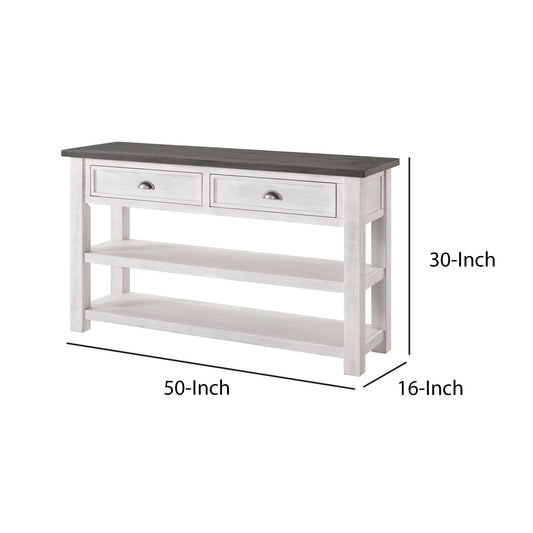 Coastal Rectangular Wooden Console Table With 2... Coastal Rectangular Wooden Console Table With 2 Drawers, White And Gray By Benzara
