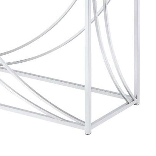 Glass Top Rectangular Sofa Table With Swooping ... Glass Top Rectangular Sofa Table With Swooping Curves, Clear And Silver By Benzara