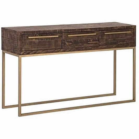 Wooden Sofa Table With 3 Storage Drawers And Me... Wooden Sofa Table With 3 Storage Drawers And Metal Base, Brown And Gold By Benzara