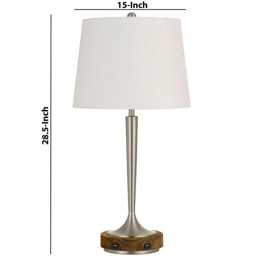 150W Metal Table Lamp With Oval Shade And 2 Usb... 150W Metal Table Lamp With Oval Shade And 2 Usb Outlets, White And Silver By Benzara