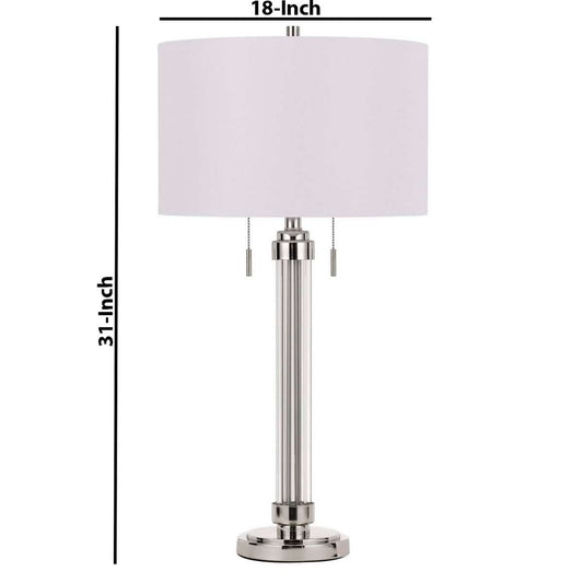 60 X 2 Watt Metal And Acrylic Table Lamp With F... 60 X 2 Watt Metal And Acrylic Table Lamp With Fabric Shade, White And Silver By Benzara