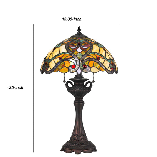 2 Bulb Tiffany Table Lamp With Leaf Design Glas... 2 Bulb Tiffany Table Lamp With Leaf Design Glass Shade, Multicolor By Benzara