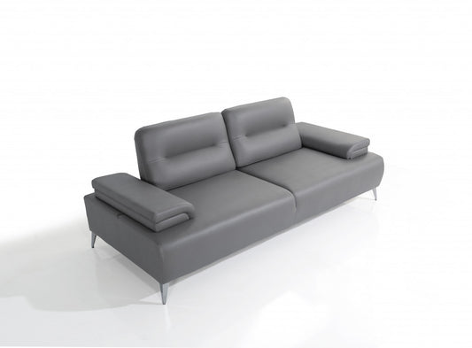 Contemporary 87" Light Grey Leather Sofa By Hom... Contemporary 87" Light Grey Leather Sofa By Homeroots