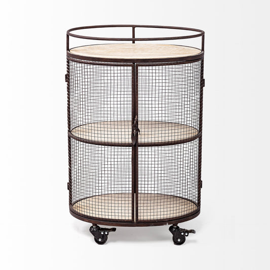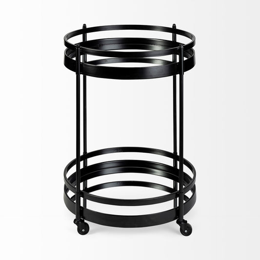 Cyclider Black Metal With Two Wooden Shelves Ba... Cyclider Black Metal With Two Wooden Shelves Bar Cart By Homeroots