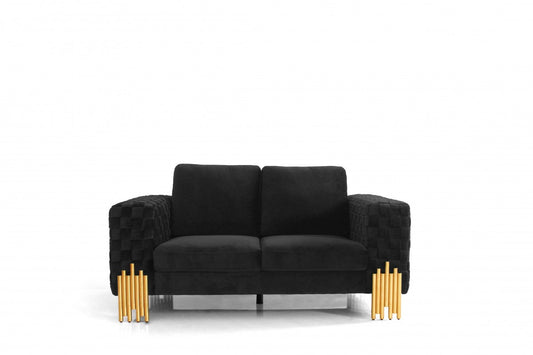 Stylish 69" Black Velvet And Gold Accent Lovese... Stylish 69" Black Velvet And Gold Accent Loveseat By Homeroots