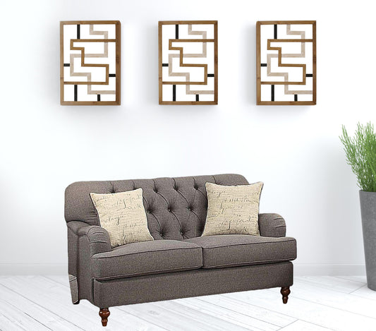 61" Dark Gray And Brown Linen Curved Love Seat ... 61" Dark Gray And Brown Linen Curved Love Seat And Toss Pillows By Homeroots