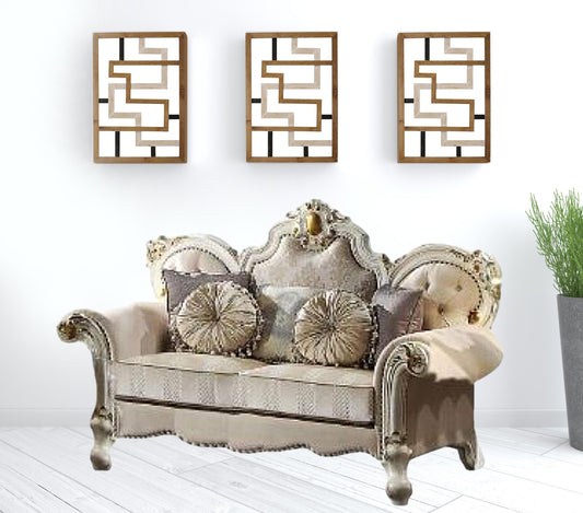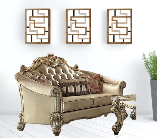 Velvet Antique Champagne Upholstery Poly-Resin ... Velvet Antique Champagne Upholstery Poly-Resin Loveseat w Pillows By Homeroots