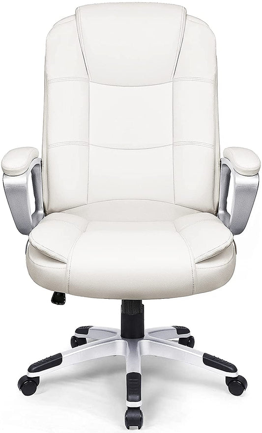 White Leather Executive Chair with Lumbar Suppo... White Leather Executive Chair with Lumbar Support By Homeroots