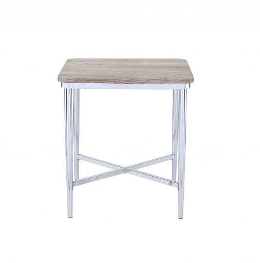 Gray Oak And Chrome Metal Tube End Table By Hom... Gray Oak And Chrome Metal Tube End Table By Homeroots