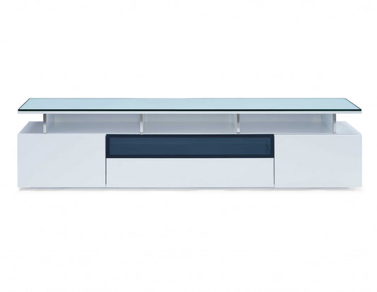 Tv Unit High Gloss White With Gray Glass Middle... Tv Unit High Gloss White With Gray Glass Middle Drawer 2 Drawers And 2 Doors By Homeroots