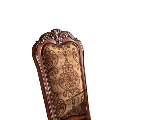Faux Leather Upholstered Wooden Side Chair With... Faux Leather Upholstered Wooden Side Chair With Carved Details, Gray And Gold, Set Of Two By Benzara