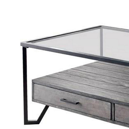 48 Inch Metal Coffee Table With Glass Top And 2... 48 Inch Metal Coffee Table With Glass Top And 2 Drawers Gray By Benzara