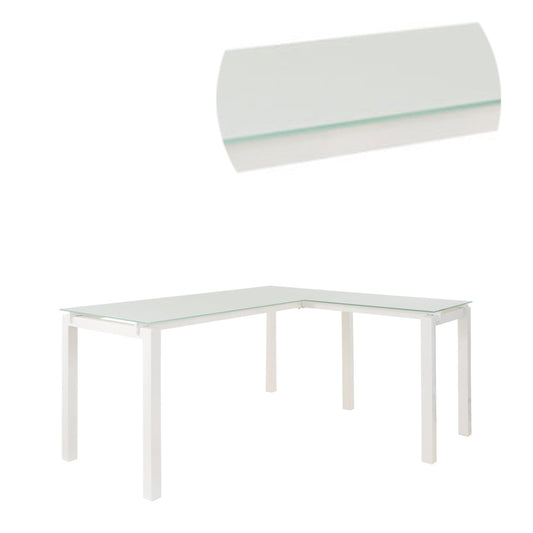 Metal L Shape Desk With Frosted Glass Top And B... Metal L Shape Desk With Frosted Glass Top And Block Legs, White By Benzara