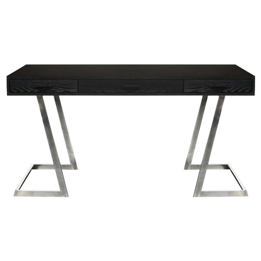 Juniper Contemporary Desk with Polished Stainle... Juniper Contemporary Desk with Polished Stainless Steel Finish and Black Top By Armen Living