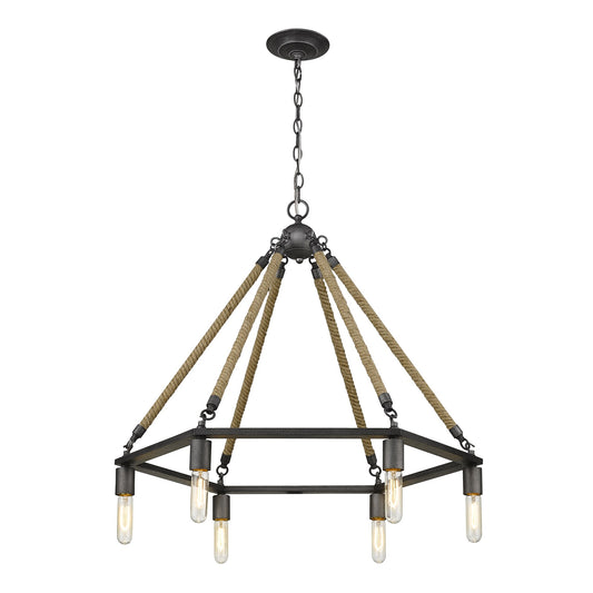 Grayson 6-Light Antique Gray Chandelier With Ju... Grayson 6-Light Antique Gray Chandelier With Jute Wrapped Uprights By Homeroots