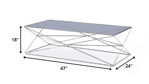 15' Glass and Stainless Coffee Table By Homeroots 15' Glass and Stainless Coffee Table By Homeroots