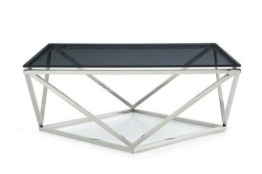 18' Smoked Glass and Stainless Steel Coffee Tab... 18' Smoked Glass and Stainless Steel Coffee Table By Homeroots