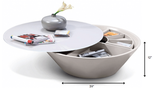 12' Grey Glass Coffee Table with a Swivel Compa... 12' Grey Glass Coffee Table with a Swivel Compartment By Homeroots