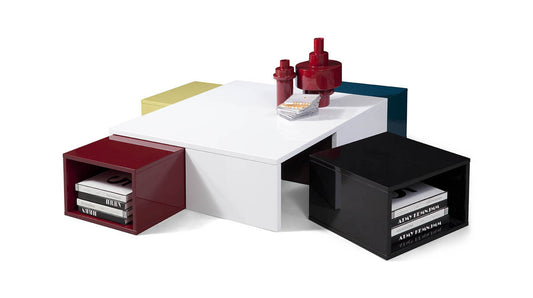 12' White Gloss Coffee Table with Pull Out Squa... 12' White Gloss Coffee Table with Pull Out Squares By Homeroots