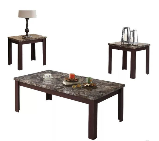 48' X 24' X 18' 3Pc Faux Marble And Cherry Coff... 48' X 24' X 18' 3Pc Faux Marble And Cherry Coffee And End Table Set By Homeroots