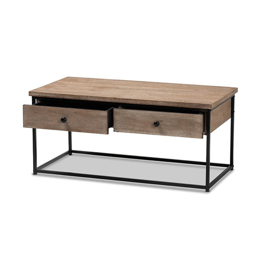 Baxton Studio Roderick Modern and Contemporary ... Baxton Studio Roderick Modern and Contemporary Weathered Oak Finished Wood and Black Metal 2-Drawer Coffee Table