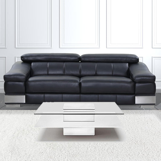 44" Beige And Black Faux Leather and Glass Rect... 44" Beige And Black Faux Leather and Glass Rectangular Coffee Table By Homeroots