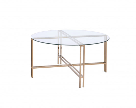 35" Champagne And Clear Glass Round Coffee Tabl... 35" Champagne And Clear Glass Round Coffee Table By Homeroots