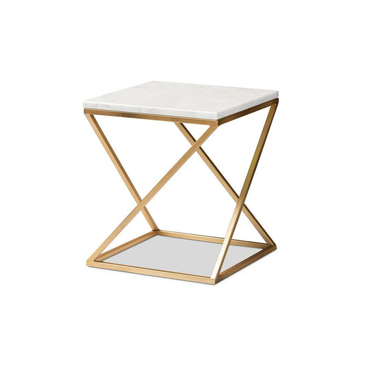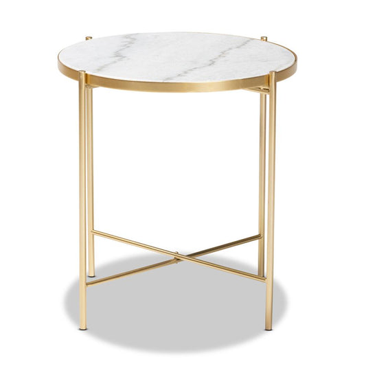 Baxton Studio Hadley Modern and Contemporary Go... Baxton Studio Hadley Modern and Contemporary Gold Finished Metal End Table with Marble Tabletop