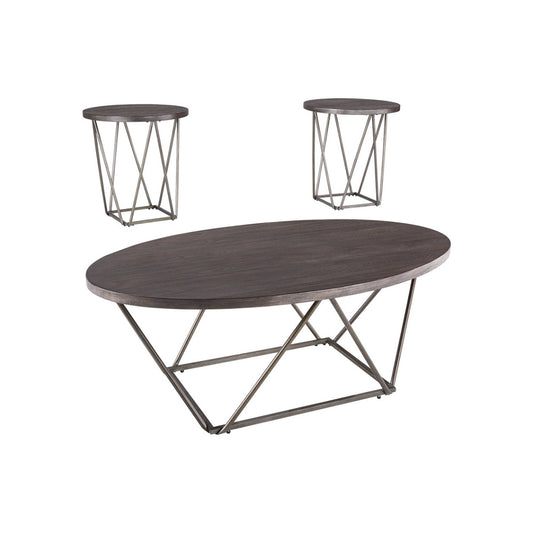 Wooden Table Set With Sturdy Metal Base, Set Of... Wooden Table Set With Sturdy Metal Base, Set Of Three, Gray And Brown By Benzara