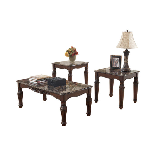 Traditional Style Wooden Table Set With Turned ... Traditional Style Wooden Table Set With Turned Legs And Faux Marble Top, Set Of Three, Dark Brown By Benzara