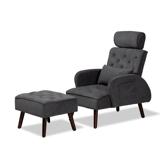 Baxton Studio Valentina Mid-Century Modern Tran... Baxton Studio Valentina Mid-Century Modern Transitional Grey Velvet Fabric Upholstered and Natural Wood Finished Armchair