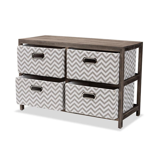 Baxton Studio Jorah Modern and Contemporary Gre... Baxton Studio Jorah Modern and Contemporary Grey and White Fabric Upholstered Greywashed Wood 4-Basket Storage Unit