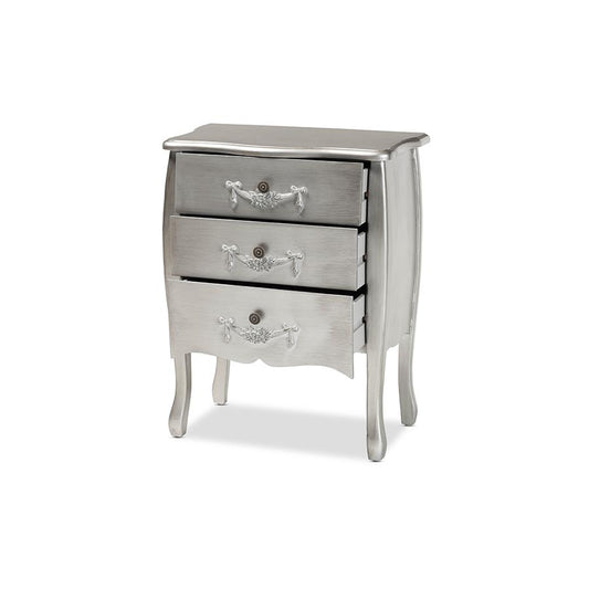 Baxton Studio Eliya Classic and Traditional Bru... Baxton Studio Eliya Classic and Traditional Brushed Silver Finished Wood 3-Drawer Storage Cabinet