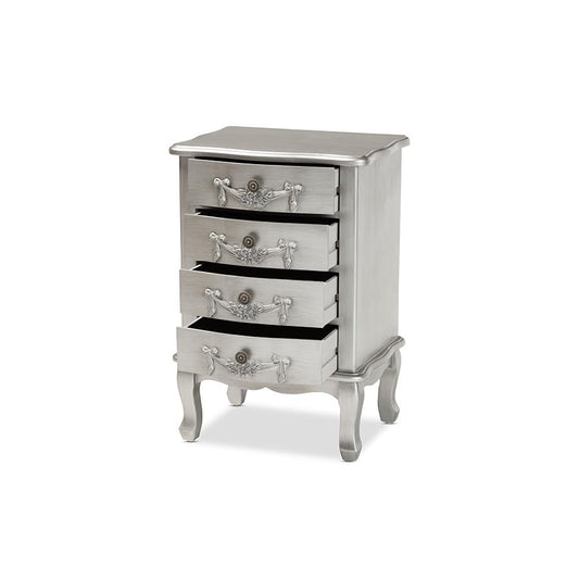 Baxton Studio Callen Classic and Traditional Br... Baxton Studio Callen Classic and Traditional Brushed Silver Finished Wood 4-Drawer Nightstand