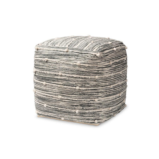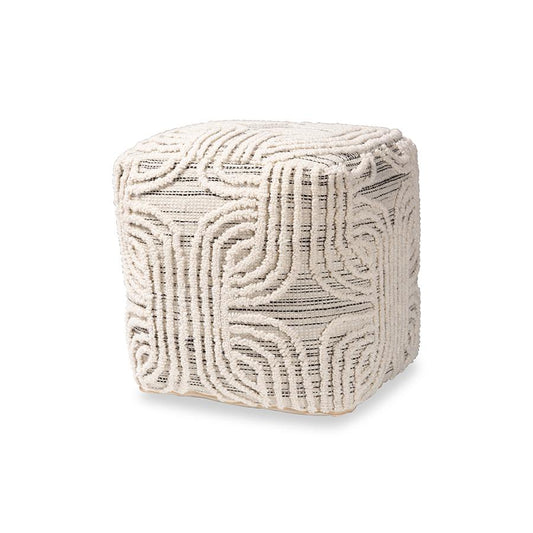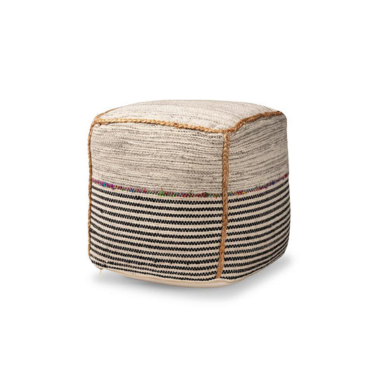 Baxton Studio Arlett Modern and Contemporary Bo... Baxton Studio Arlett Modern and Contemporary Bohemian Ivory and Black Handwoven Wool Blend Pouf Ottoman