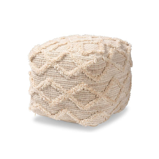 Baxton Studio Carilyn Modern and Contemporary M... Baxton Studio Carilyn Modern and Contemporary Moroccan Inspired Ivory Handwoven Wool Blend Pouf Ottoman