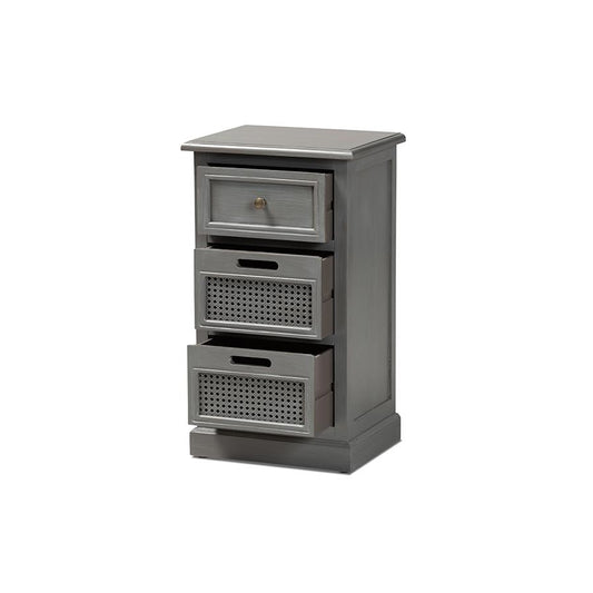 Baxton Studio Sheldon Modern and Contemporary V... Baxton Studio Sheldon Modern and Contemporary Vintage Grey Finished Wood and Synthetic Rattan 3-Drawer End Table