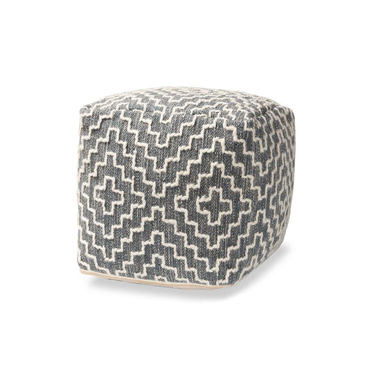 Baxton Studio Macaco Modern and Contemporary Mo... Baxton Studio Macaco Modern and Contemporary Moroccan Inspired Dark Grey and Ivory Handwoven Cotton Blend Pouf Ottoman