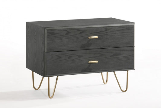 Contemporary Gray And Gold Nightstand With Two ... Contemporary Gray And Gold Nightstand With Two Drawers By Homeroots
