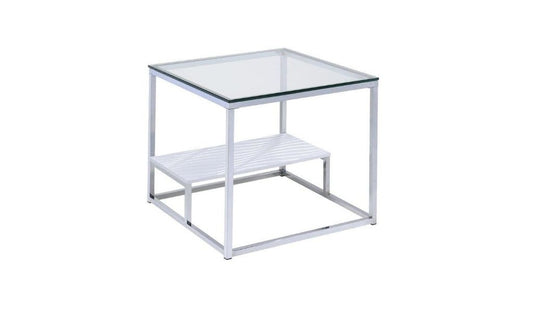 22" Chrome And Clear Glass Square End Table Wit... 22" Chrome And Clear Glass Square End Table With Shelf By Homeroots